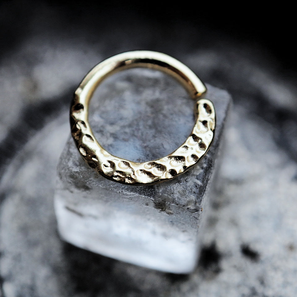 hammered thick gold plated piercing ring
