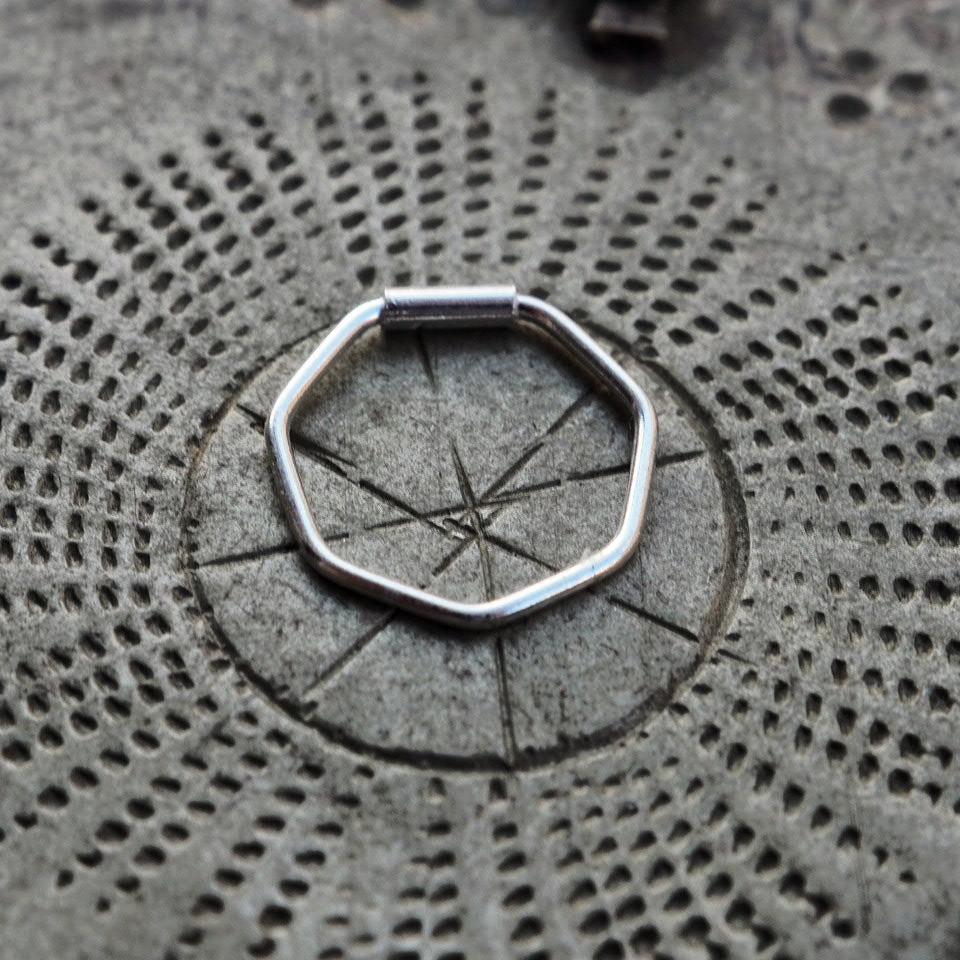 Silver hexagon piercing Ring