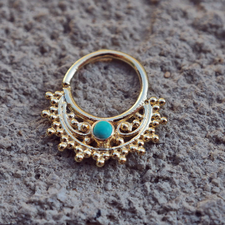 Gold Mandala With turquoise big piercing ring