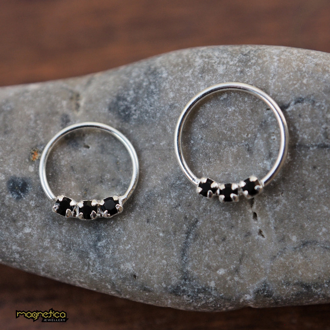 silver black zircon piercing ring