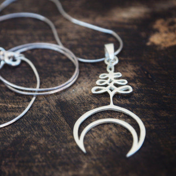 Unalome crescent moon silver pendant
